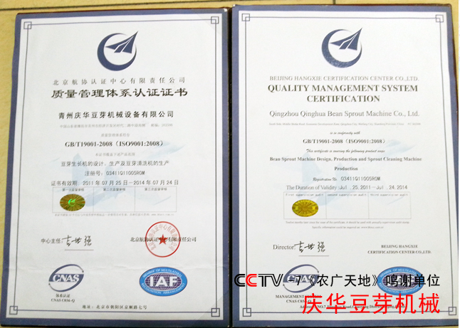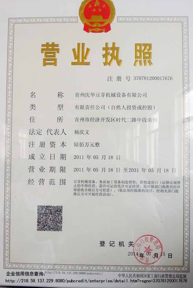 公司名稱:山東慶華豆芽機械設(shè)備有限公司 (原青州豆芽機械廠)